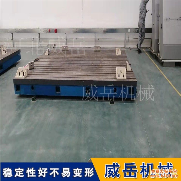 铸铁平台适用于各种检验工作,细致测量用的基准平面,用于机床机械测量基准,检查零件的尺寸精度或形位偏差,并作细致划线。在机械制造中也是不可缺少的基本工具。外观基本上是箱体式,工作面有长方形、正方形、圆形等,材料为HT200-300,QT400-600,采用刮研工艺,工作面上可加工V形、T形、U形槽、燕尾槽、圆孔、长孔等。