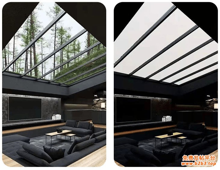 视觉效果:调光玻璃提供了更丰富的设计选择,创造出独特的室内外视觉效果。