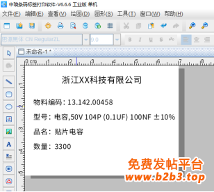 至此元器件物料标识标签上的固定和可变文本内容就添加完成了,接下来的文章中我们会讲到包含标签上所有可变信息的二维码在中琅条码标签批量打印软件中如何制作,以及各信息之间的分隔符如何添加。有兴趣的小伙伴请继续关注。